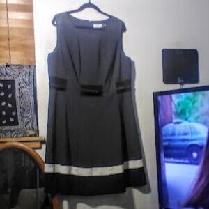 Calvin Klein Gray Black Fit Flare Belted Classic Office Dress Women’s Size 16 W