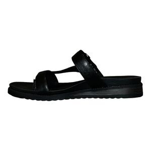 Dr. Scholls Womens Island Dream Thong Sandals Black Faux Leather 11M New