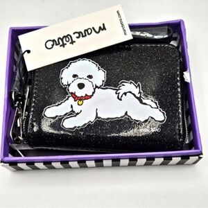 Marc Tetro White Bichon Frise Dog Black Sparkly Wristlet NWT