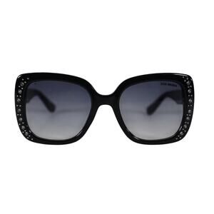 The Steve Madden DORIE Oversized Sunglasses are serving confident glam with a side of drama. These shiny black oversized rounded-square frames feature rhinestone detailing along the outer edges, giving luxe energy without being over-the-top. The gray gradient lenses fade smoothly and offer 100% UV protection, so your eyes are protected.