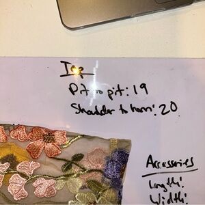 Pit to Pit: 19” Shoulder to Hem: 20”