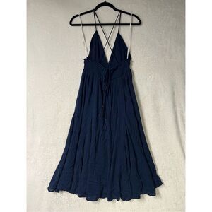 Lulus Essentially Elegant Navy Blue Sleeveless Backless Midi Dress New without tag, brand labels have been cut in half to prevent store returns Fit true to size Works best for A to C cup sizes Waist Fitted - elastic waist allows stretch Hip Not Fitted - fuller skirt allows room for hips May be worn with petals, or no bra Fabric has no stretch Mid-calf length. Size M measures approximately 41" from adjustable straps to hem Whether you're headed to a summer soiree or just out for the day, the Lulus Essentially Elegant Navy Blue Sleeveless Backless Midi Dress will have you looking your best! Lightweight woven fabric shapes this flattering, go-everywhere dress. Tying spaghetti straps (with tasseled aglets) cross the open back, supporting a smocked bodice with a plunging V-neckline. Banded empire waist tops the draping skirt that has godet details and falls to a midi hem. Details Shell: 100% Rayon. Lining: 100% Rayon. Exclusive Of Decoration Hand Wash Cold Lined Style: adjustable, alluring, airy, backless, beach, bohemian, boho, breezy, brunch, casual, classy, coastal, crinkle, crisscross, cottagecore, dreamy, effortless, elegant, feminine, flowy, flattering, festival, flirty, gathered, getaway, girly, holiday, lightweight, modern, movement, openback, plunging, picnic, pleated, poolside, romantic, ruched, ruffle, sexy, spaghetti, strappy, sundress, swimcoverup, resort, marilyn monroe dress, 50s, 90s, y2k, Christmas, new year, valentines say, party, wedding guest, vacation