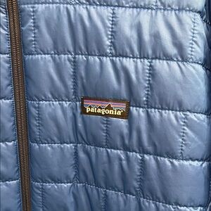 Stay cozy with this blue Patagonia puffer. Perfect for chilly days. Lightweight and stylish.