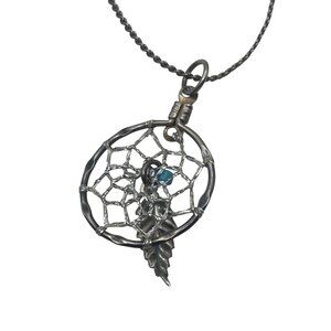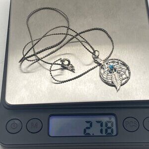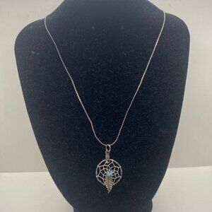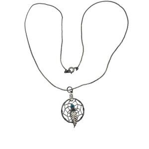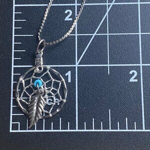 Vintage Sterling Silver Dreamcatcher Pendant Necklace 18" Feather Boho Western