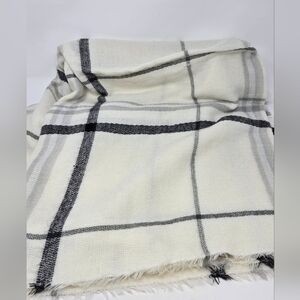 OLD NAVY OVERSIZE FLANNEL BLANKET SCARF CREAM PLAID SHAWL WRAP WOMEN OS COZY