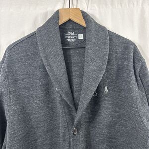 Polo Ralph Lauren Mens Charcoal Double-Knit Shawl Collar Jersey Cardigan Size L