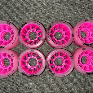 Atom Savant pink hybrid wheels 84A hardness. These are hybrid wheels. Selling all 8 wheels.