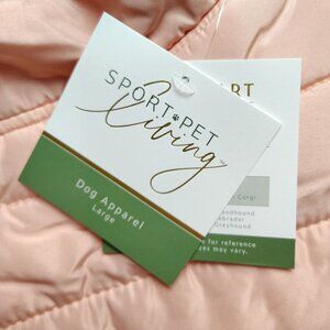 This pink quilted puffer jacket, designed by Sportpet Living, ensures your small dog remains cozy during colder months. Its lightweight yet warm construction offers comfort without restricting movement, making it suitable for active pets. The soft inner lining provides added warmth. Sized for chest circumferences between 24-27 inches, ideal for bigger breeds.