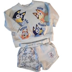 Bluey, Bingo & Family Kids Light Blue Sweatshirt and Shorts Set 18M