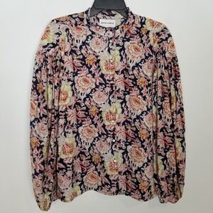 Antik Batik Andre Blouse Floral Button Up Top Sz M Long Sleeve Boho Cotton