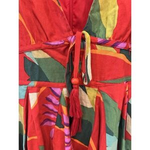 House Of Harlow 1960 Red Floral 6 Linen Blend Puff Sleeve Fit &Flare