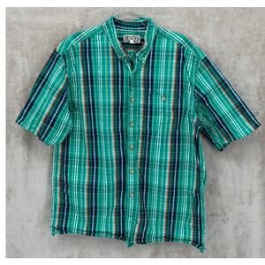 Duluth Trading Shirt Mens Large Tall Green Plaid Button Up Short Sleeve Cotton