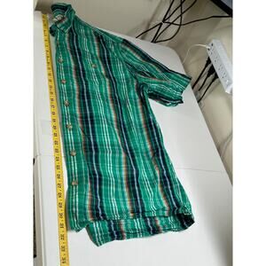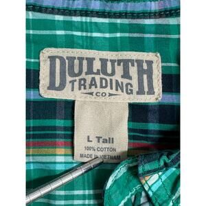 Duluth Trading Shirt Mens Large Tall Green Plaid Button Up Short Sleeves 100% Cotton Casual Outdoors Breathable Country