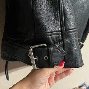 All Saints | Womens Maizie Shearling-Collar Leather Biker Jacket Size: Medium