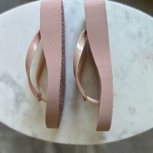 Elegant Tory Burch platform flip-flop. Light Sand (blush color) with iconic gold logo.