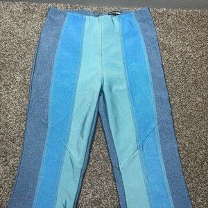Fashion Nova Women’s Large Blue and Teal Striped High Rise Pants
