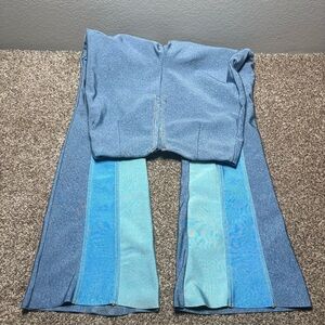 Chic leggings with blue and teal stripes. Ideal for casual outings. Please see photos for measurements