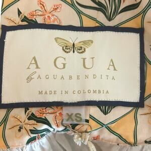 Agua by Agua Bendita Dress Chan Chan Miel Flor Mini Floral Cotton XS This botanical-print minidress is easy to wear and accessorize. Its wide, ruffled neck can be worn on or off the shoulders, and the fit-and-flare silhouette highlights the waist. 100% Cotton. Size XS. Chest 18", Waist 15", Length 32". Oversized fit, would fit as small as well. NWT, New with tags.