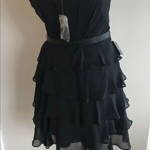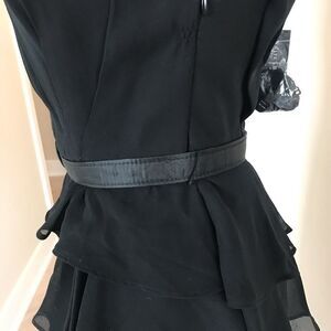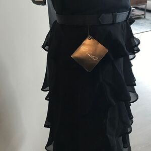 WHBMÂ Strapless BeltedâRuffle Chiffon Cocktail Party Dressâ Black 2âNWT