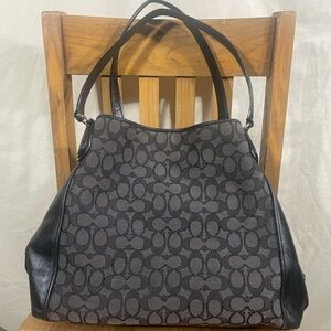 Coach Edie Shoulder Bag Signature Grey Black Current Leather