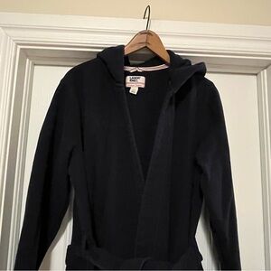 Land’ End Women’s Size Large Navy Blue Serious Sweats Fleece Lined Bathrobe Robe