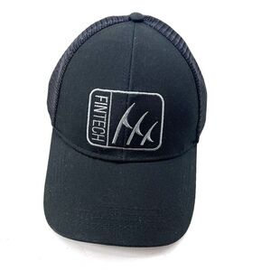 Fintech Fishing Black Logo Patch Mesh Snap Back Trucker Cap Hat Unisex OS -