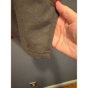 Keywords: Lakota, men's sweater, full zip, large, gray, maroon, polyester, casual, fall, lightweight, machine washable, pre-owned, signs of wear, solid pattern, zippered sweatshirt.
