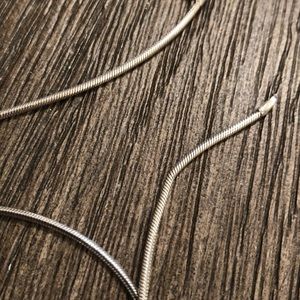 This has primitive birds, stick figure birds, sandpiper birds, or beach birds. Alternating design with birds and triangles. Necklace is a round snake chain. Has one curve in chain. See pic.