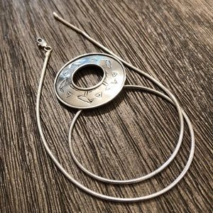 Vintage necklace and chain. This is a round disc shaped pendant, marked 925. Unknown makers mark.