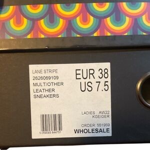 Title: Kurt Geiger London Lane Stripe Sneaker in White Leather with Metallic Rainbow-Stripe Panels
