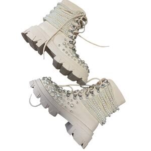 Azalea Wang Pearl Embellished Platform Combat Boots Sz 6 Y2K diamond NEW