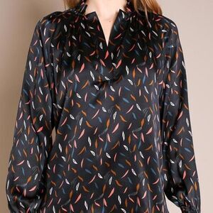 Tucker Long Sleeve Polo Blouse Space Cake Silk Top