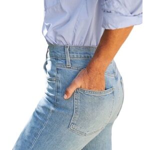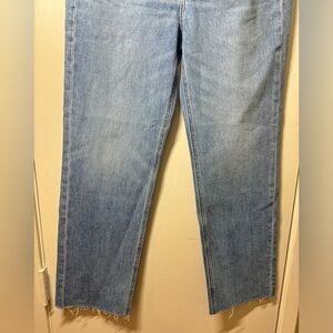 Frank & Eileen Monaghan Button Fly High Rise Raw Hem Straight Leg Mom Jeans 28