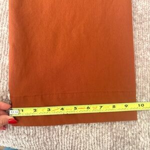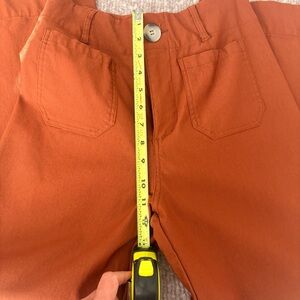 Burned orange Mid weight cropped high waist pants with four pocket design (front patch pockets). Seem details to cinch waist. Measurements in the pics.