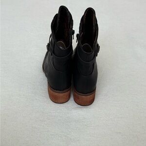 Chic black boots by Korks featuring a contrasting brown heel and side zip. Perfect for any occasion, these boots offer both comfort and elegance. Excellent condition.