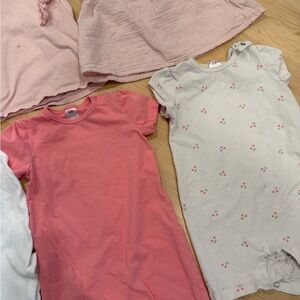 Tops and rompers. Some tops have small spots shown in pictures but great for daycare or every day wear!