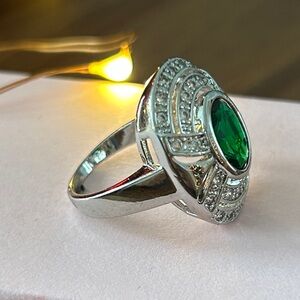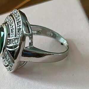 925 Sterling Silver vintage uncirculated Swavorski green crystal approximately 2 CT adorned with faux diamonds