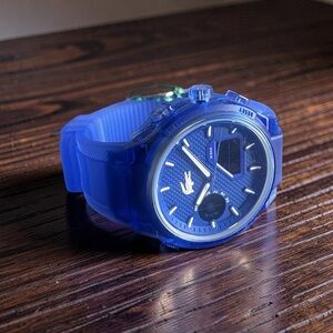 With a bold red carbon resin case and matching red resin band, this watch exudes a sporty and casual style.