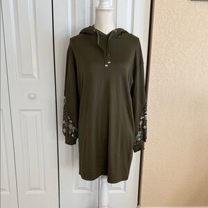 Chic olive dress by Allison Brittney. Features floral accents for a stylish touch. Buttery soft fabric great for lounging or comfort wear.