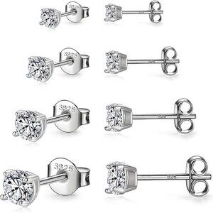 Features: These classic stud earrings feature cubic zirconia that mimics diamonds, set in a sleek white gold plating over high-quality 925 silver posts and clasps. They are lightweight, comfortable, and perfect for sensitive ears. The push-back design ensures they stay secure.