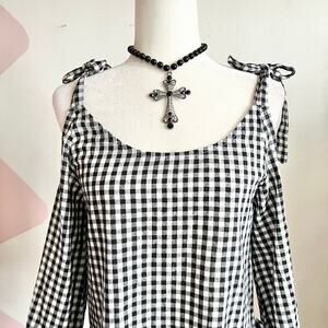 Black Gingham Top, Vintage Y2K 2000s Indie Sleaze Soft Grunge Small