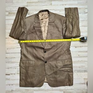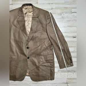 Stafford 44R Brown Shepherds Check Tweed Silk Wool Mens Blazer Jacket Sport Coat