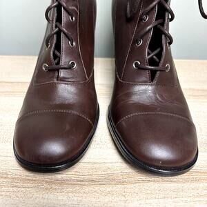 Apostrophe Tootsie Heeled Ankle Booties Brown Leather Victorian Style Shoes 8.5