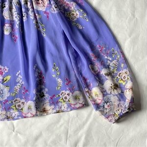 White House Black Market periwinkle blue smocked Floral Top Size Medium