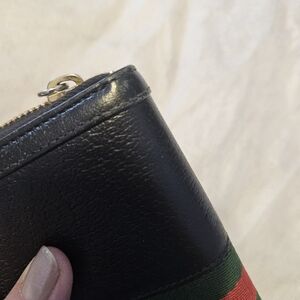 Gucci Black Wallet with Green and Red Stripe Zip Around