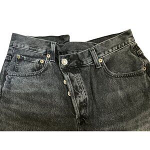AGOLDE Crisscross Jean Shorts Black High-Waisted Distressed Frayed Hem - 27