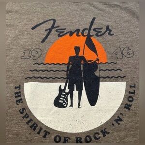 FENDER Brown Sunset Spirit of Rock n Roll Surfboard T-Shirt Unisex NWT