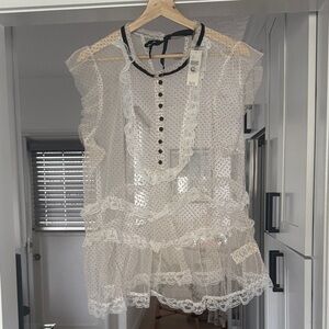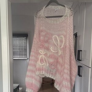 Stylish brown cardigan with pink and cream accents. Features a button-up front.
