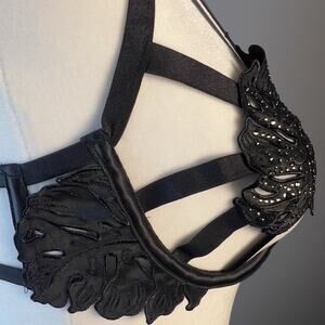 Victoria's Secret Very Sexy Demi Bra Black Satin Leaf Embroidered 36C NWT