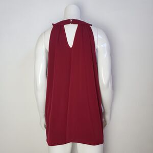 NWT Tempted Los Angeles plus size maroon tank top. Has silver beaded neckline, v cutouts in front and back, and 2 button closure in back. 95% polyester, 5% spandex. Size 1X. Pictured on size 2/4 mannequin unpinned. Measurements lying flat in inches approx + stretch: Armpit to armpit 22 Waist 22.5 Hips 23.5 Length 27 New with tag. No trades. spring, summer, beading, glam, boho, bohemian, wine, burgundy, vacation, jewel tone, glam, halter
